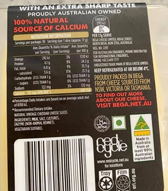 Bega Strong & Bitey Vintage Cheese Slices 30 Pack Bega Strong & Bitey Vintage Cheese Slices 30 Pack Product Details Additional Information INGREDIENTS (AS AT 14TH JULY 2021): Milk, Salt, Cultures, Enzyme (Non-Animal Rennet). AVAILABLE AT: Coles IGA AFK RANKING: Better Barambah Organics Organic Tasty Cheddar Cheese Block 250gBega Tasty Cheese Block