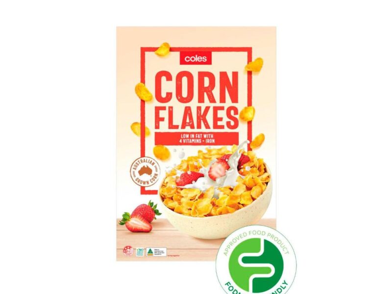 Coles Corn Flakes 440g Coles Corn Flakes 440g Product Details Additional Information INGREDIENTS (JANUARY 2026): Corn (92%), Sugar, Salt, Barley Malt Extract, Vitamins (Vitamin B3, Folic Acid, Vitamin B1, Vitamin B2), Mineral(Iron). AVAILABLE AT: Coles AFK RANKING: Avoid Sanitarium Weet-bix Cholesterol Lowering Breakfast Cereal 440gColes I’m Free From Special Flakes 375g