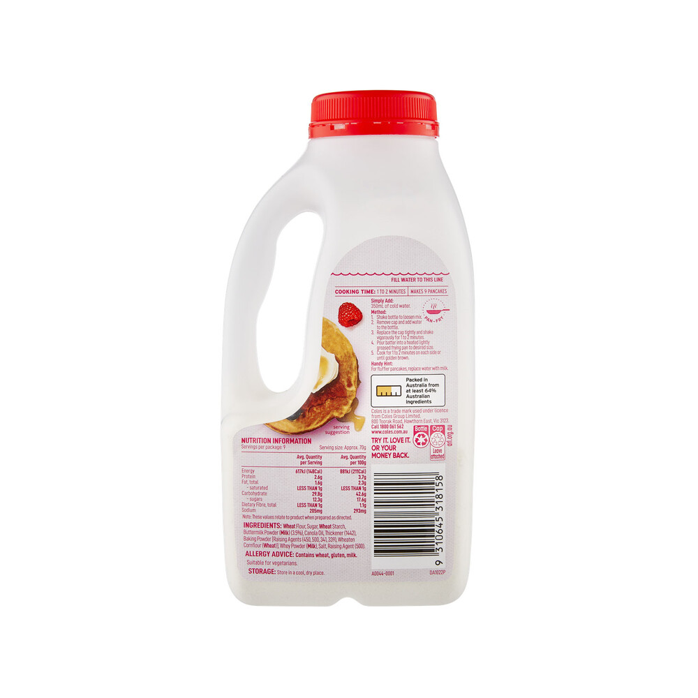 Wheat Flour, Sugar, Wheat Starch, Buttermilk Powder (Milk) (3.5%), Canola Oil, Thickener (1442), Baking Powder [Raising Agents (450, 500, 341, 339), Wheaten Cornflour (Wheat)], Whey Powder (Milk), Salt, Raising Agent (500).