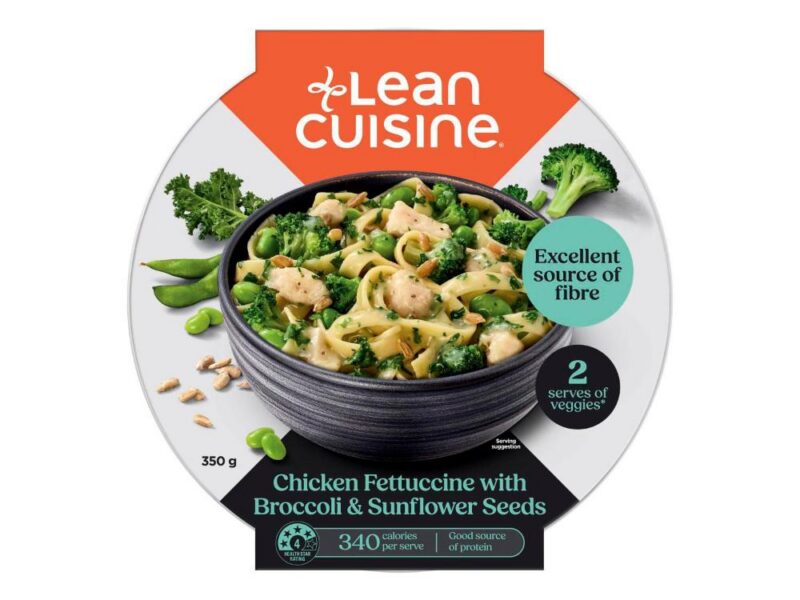 Sauce (35%) (Water, Onion, Cream (Milk), Thickener (1422), Milk Solids, White Wine (Processing Aids (Egg, Milk), Cheese (Milk), Parmesan Cheese (Milk), Garlic, Natural Flavour, Salt, Yeast Extract, Spice, Sugar, Herb), Fettuccine Pasta (19%) (Water, Durum Wheat Semolina, Vegetable Oil), Kale (16%), Edamame Beans (11%) (Soy), Broccoli (11%), Marinated Cooked Chicken (6%) (RSPCA Approved Australian Chicken, Water, Salt, Thickeners (407a, 407, 415), Mineral Salts (508, 451, 450), Citrus Fibre, Natural Flavour (Milk), Sugar), Sunflower Seeds (2%).